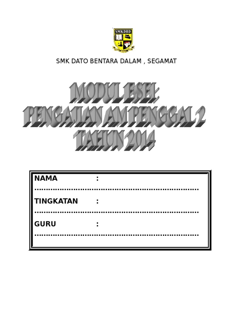 Related : Smk Dato Bentara Dalam Segamat : Master your classes with homework help, exam study guides, past papers, and more for sdbds..